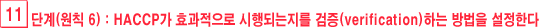 °ËÁõ¹æ¹ýÀ» ¼³Á¤ÇÏ¿©¾ß ÇÑ´Ù. °ËÁõ°ú ½É»ç¹æ¹ý, ÀýÂ÷¼­ ¹× ¹«ÀÛÀ§ ½Ã·áäÃë ¹× ºÐ¼®À» Æ÷ÇÔÇÑ ½ÃÇèÀº HACCP½Ã½ºÅÛÀÌ ¿Ã¹Ù¸£°Ô ÀÛµ¿Çϰí Àִ°¡¸¦ °áÁ¤Çϴµ¥ »ç¿ëµÉ ¼ö ÀÖ´Ù. °ËÁõÀÇ ºóµµ´Â HACCP°¡ È¿°úÀûÀ¸·Î ¼öÇàµÇ°í ÀÖÀ½À» º¸ÁõÇÒ ¼ö ÀÖÀ» Á¤µµ·Î ÃæºÐÇÏ¿©¾ß ÇÑ´Ù. °ËÁõȰµ¿ÀÇ ¿¹´Â ´ÙÀ½°ú °°´Ù.