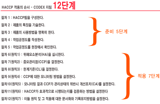 ÀǰŠHACCP °èȹÀ» Àû¿ëÇϰí ÀÖ½À´Ï´Ù. ´ÙÀ½ÀÇ µµÇ¥´Â CODEXÀÇ ÁöħÀ¸·Î HACCP Àû¿ëÀ»
