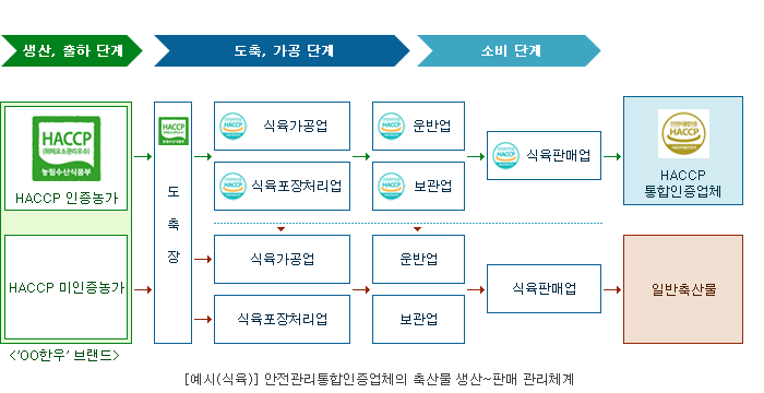 - °¡ÃàÀÇ »çÀ°, Ãà»ê¹°ÀÇ Ã³¸®¡¤°¡°ø¡¤À¯Åë ¹× ÆÇ¸Å µî¿¡ Âü¿©ÇÏ´Â ÀÛ¾÷À塤¾÷¼Ò ¶Ç´Â ³óÀå¿¡ ´ëÇØ ¾ÈÀü°ü¸®ÀÎÁõ±âÁØ(HACCP)À» ÁؼöÇϰí ÀÖÀ½À» ÀÎÁõÇÏ´Â Á¦µµ